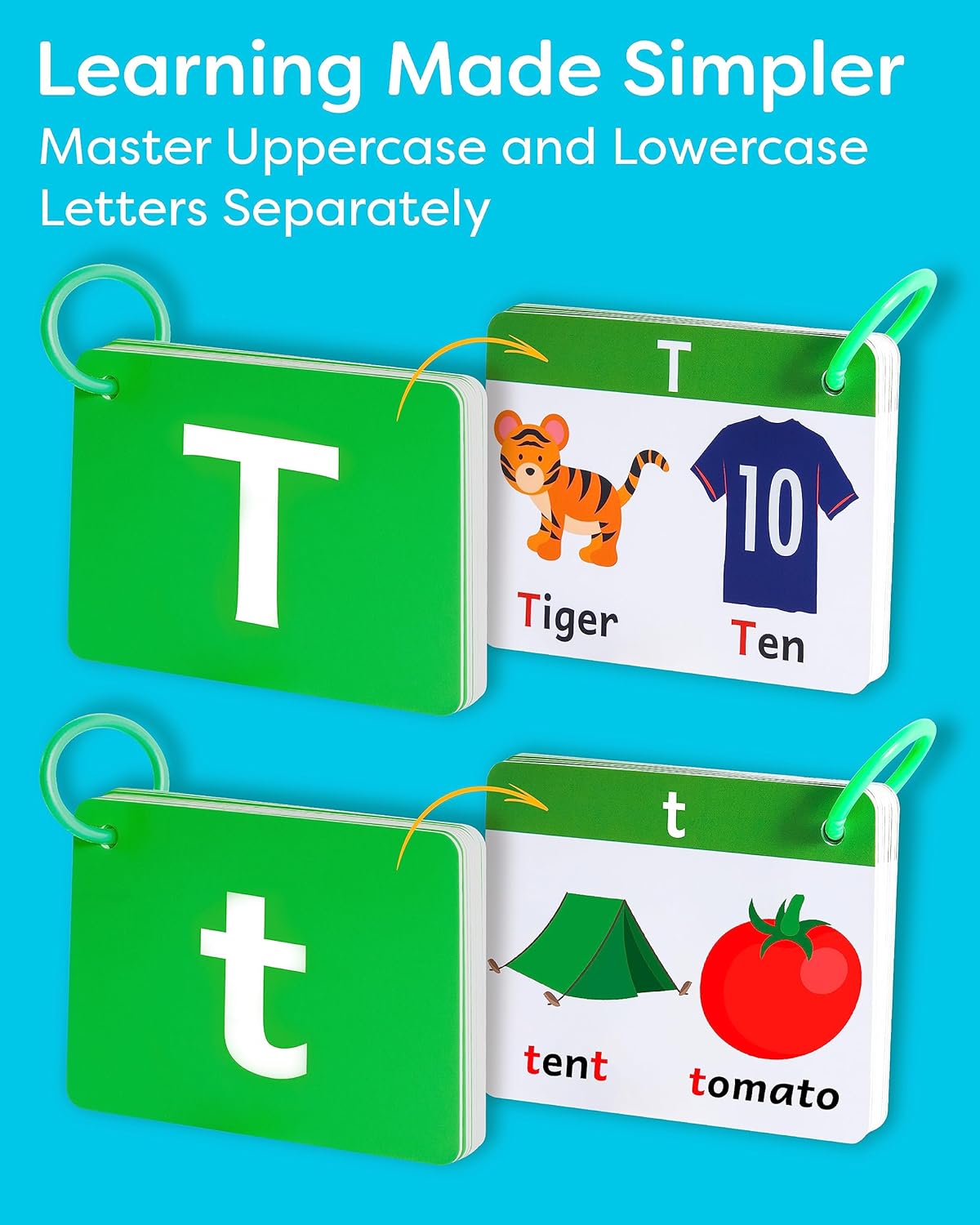 - SEPARATE CARDS FOR UPPERCASE AND LOWERCASE: Individual flash cards for both letter cases allows children to match the capital letters with the lowercase letters or spell out words with the flash cards